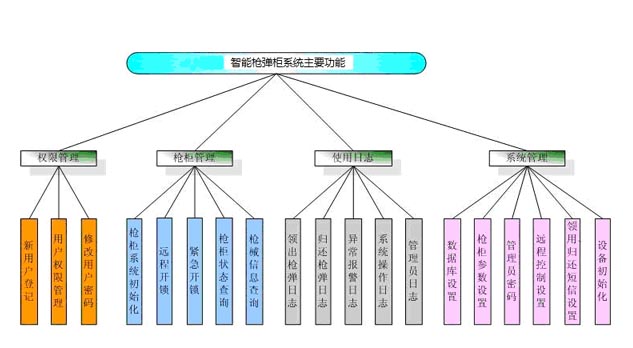 (5)報(bào)警機(jī)制分二級,分別是:法警隊(duì)和公安110,其主要表現(xiàn):超時(shí)用槍報(bào)警,槍彈柜(鎖)非正常開啟報(bào)警,斷電報(bào)警和其他設(shè)備故障報(bào)警。